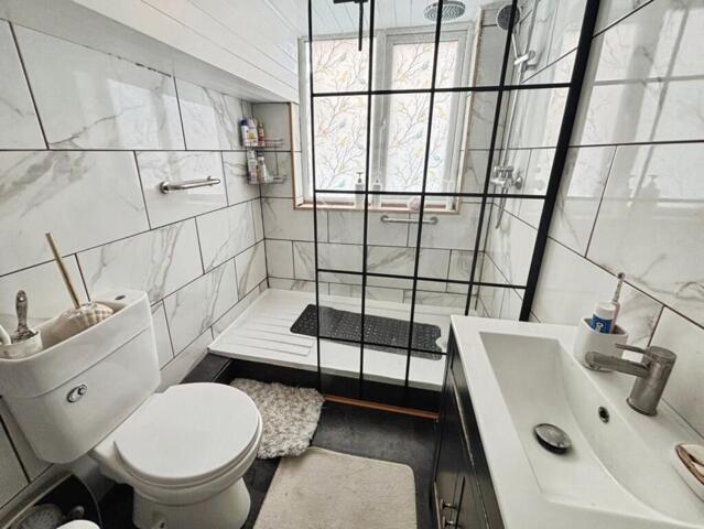 Shower Room - 2.54m x 1.67m (8'3 x 5'5 ) - uPVC double glazed window to the rear elevation, suite comprising w.c, hand basin mounted in vanity unit and walk in double shower, tiled walls and radiator.