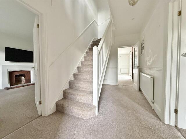 ENTRANCE HALLWAY Stairs to the first floor with under stair recess and cupboard housing the electric consumer unit and meter, radiator, door to sitting room, door to dining room and part glazed door through to: